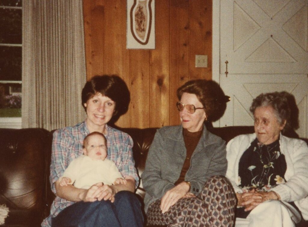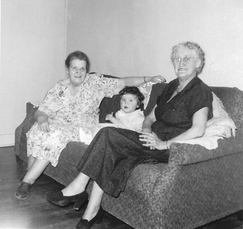 Great-Grandmothers with Debbie. Maternal Great-Grandmother Carrie Welch on left and paternal Great-Grandmother Mary Kenney on right.